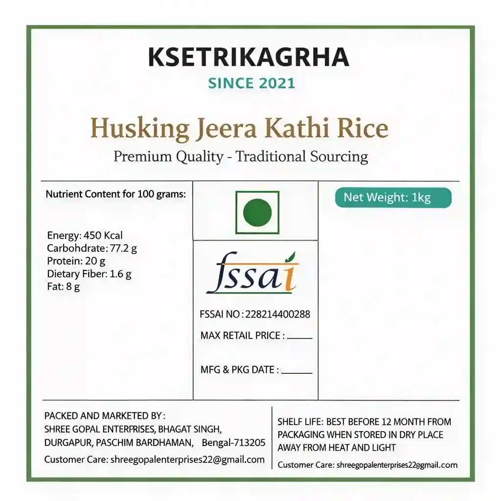 Our Husking Jeera Kathi Rice is sourced from trusted farms and processed under strict quality control measures to ensure purity and consistency. Each grain is carefully cleaned and sorted to remove impurities and maintain uniform quality.