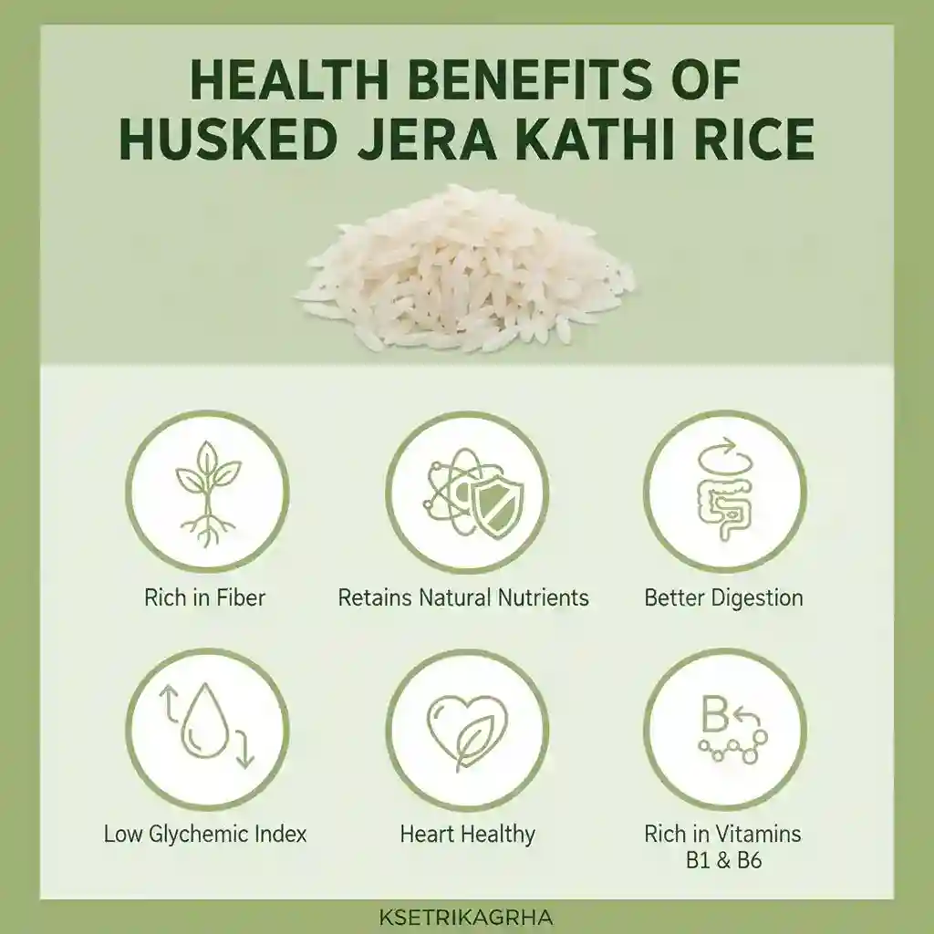 Husking Jeera Kathi Rice provides essential carbohydrates that help supply energy for daily activities. It is easy to digest and light on the stomach, making it suitable for all age groups, including children and elderly individuals.