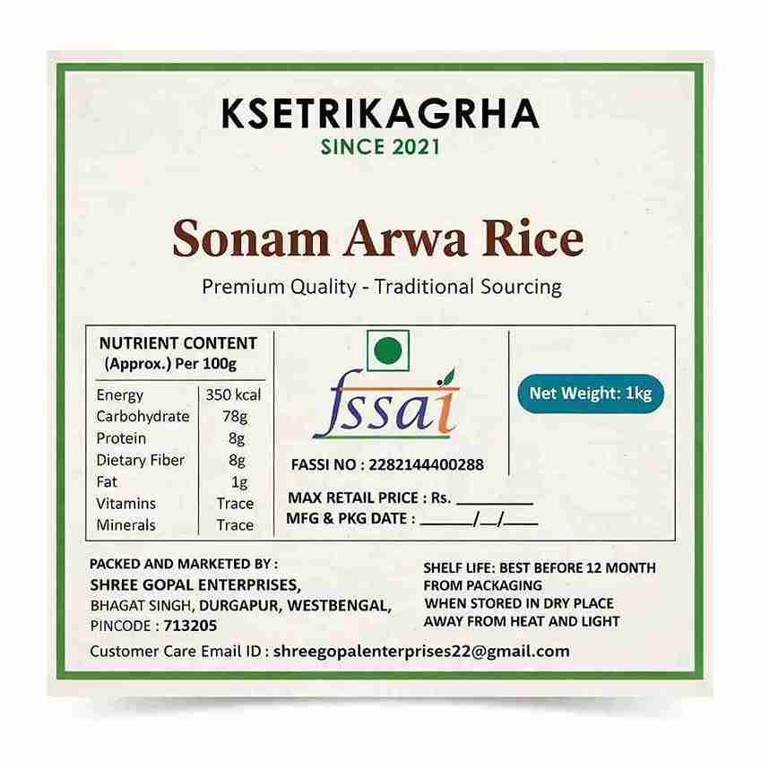 Note: Rinse thoroughly before cooking. Soaking for 20-30 minutes recommended. Use 1:2 rice to water ratio. Cooking time: 15-18 minutes. Store in a cool, dry place away from moisture. Premium Sonam Arwa rice from West Bengal – quality you can taste.
