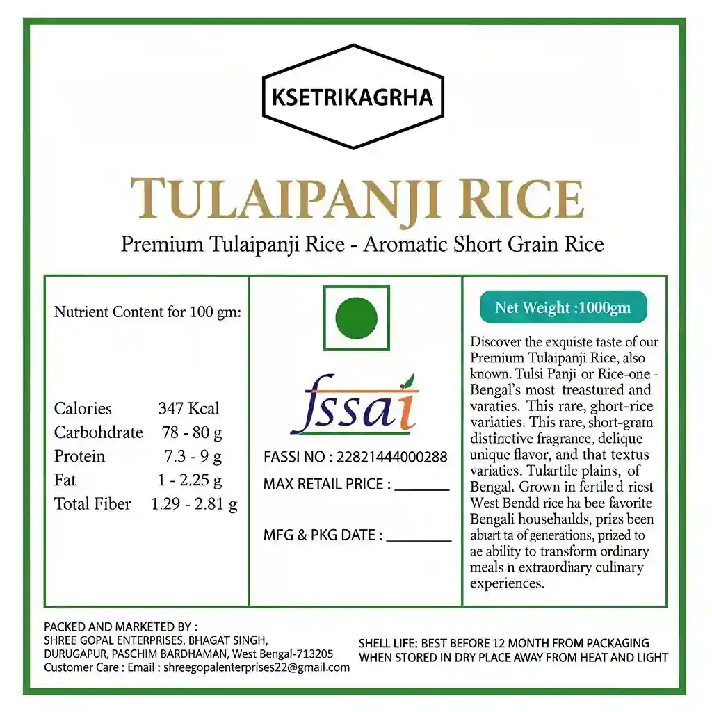 Quality Guarantee: We are committed to delivering the highest quality Tulaipanji rice to your kitchen. Each batch is carefully selected and undergoes rigorous quality checks to ensure freshness, aroma, and authentic taste.